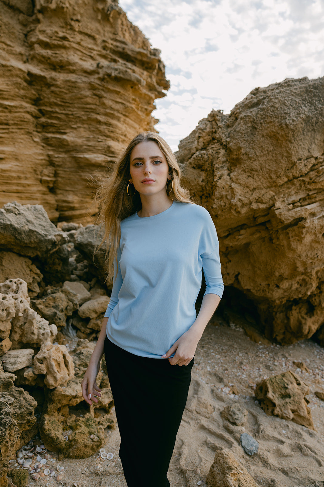 The Dalia Top in Light Blue from Daniella Faye is a versatile and elegant piece, perfect for both casual and formal occasions. Made from soft, breathable fabric, it offers a relaxed yet sophisticated fit. Its rich light blue hue adds a touch of serenity, making it easy to style with various outfits.