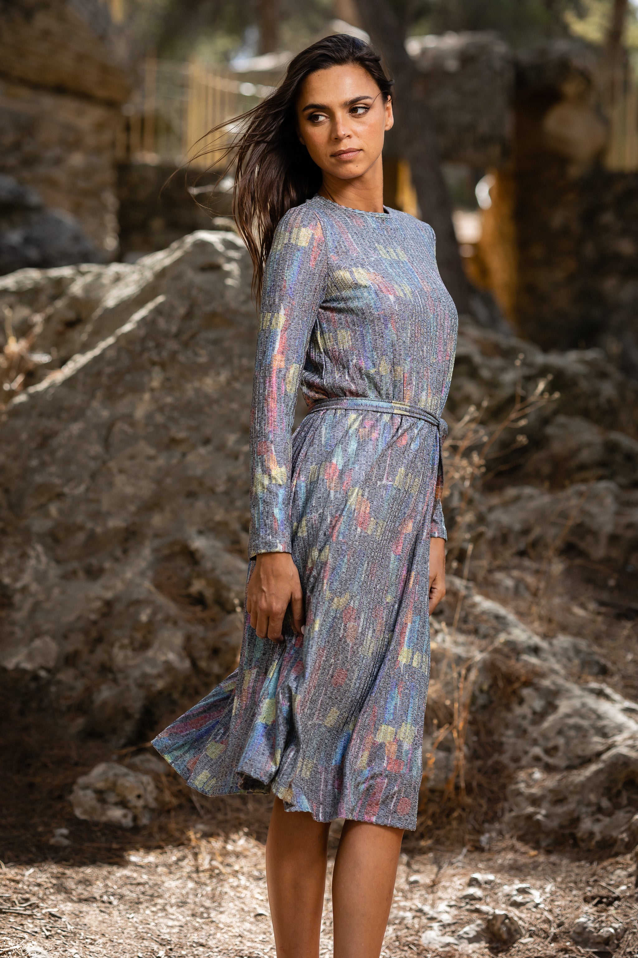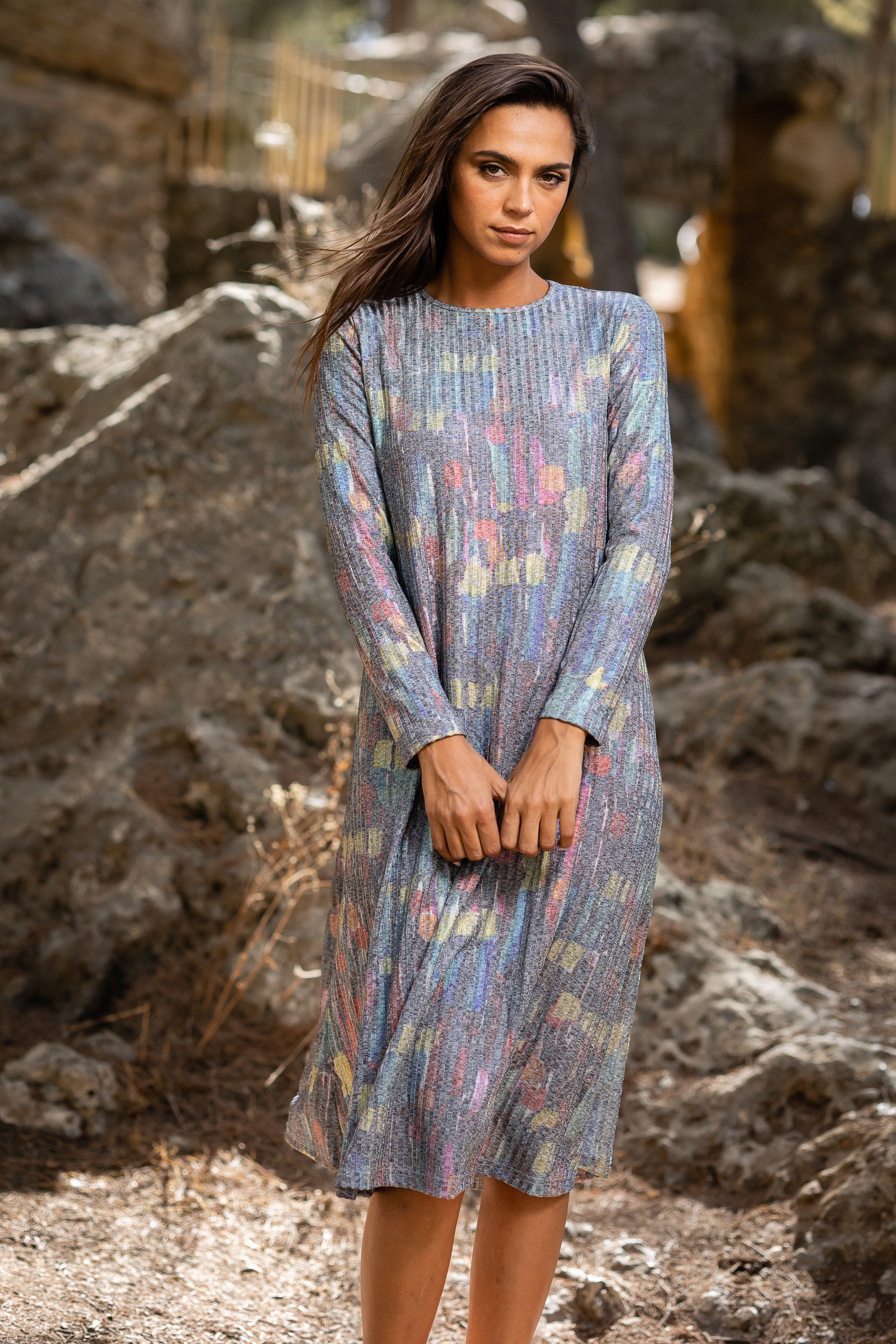 The Multi Color Swing Dress is another masterpiece in our elegant swing dress collection. The fabric is soft, stretchy and warm. The shine and glimmer makes a bold statement of modesty, beauty and allure.