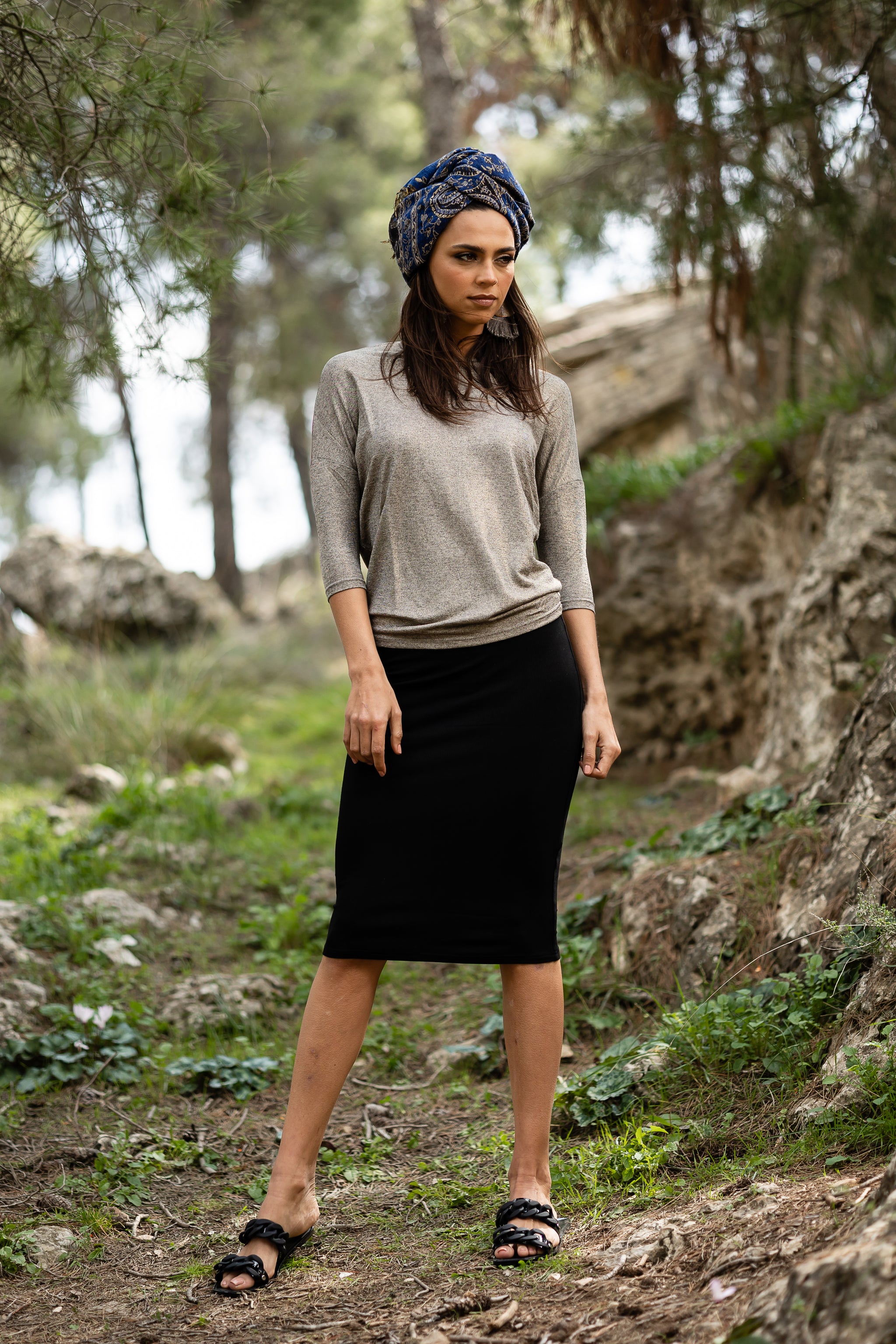 This top is a custom design of Daniella Faye that is most flattering on women of all shapes and sizes.