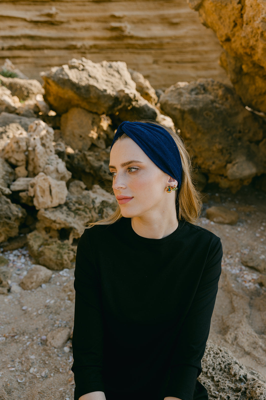 The Navy Headband offers a classic, deep blue hue that adds a refined touch to any look. Its versatile design makes it perfect for pairing with both casual and more formal outfits. Comfortable and stylish, this headband is an easy way to elevate your hairstyle while keeping it in place.