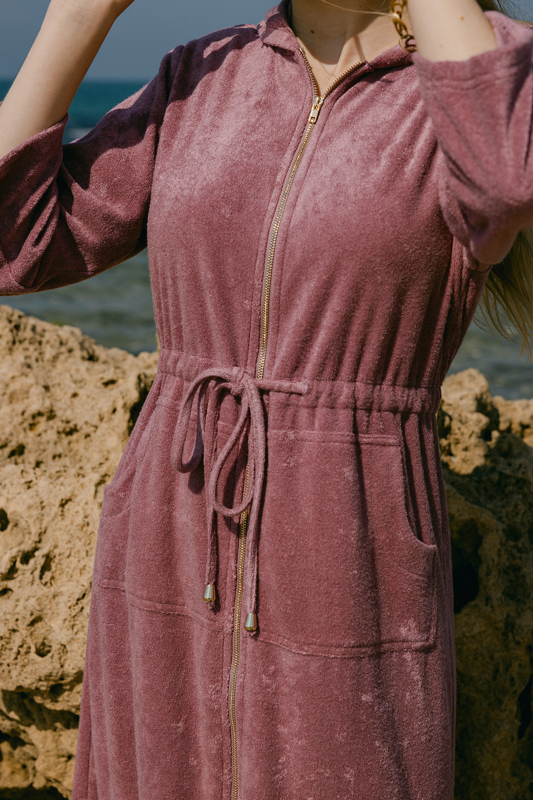 Fabric has a multidirectional sewing effect, giving each dress a unique look. See close up picture.