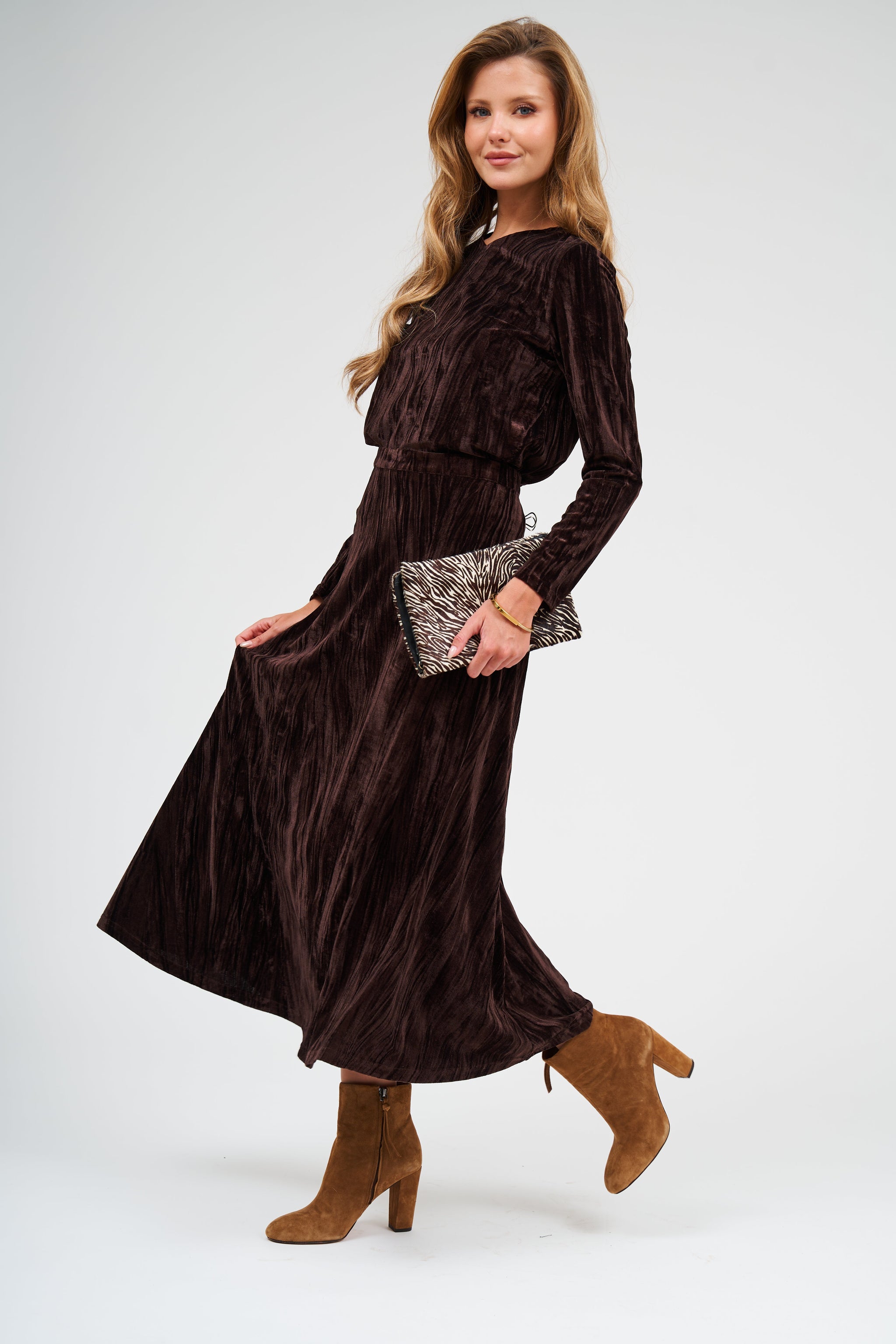 A timeless v-neck in warm hazelnut velvet. Designed with maternity and nursing comfort in mind, it's soft, stretchy, and effortlessly chic - perfect for layering or wearing solo when you want cozy sophistication.