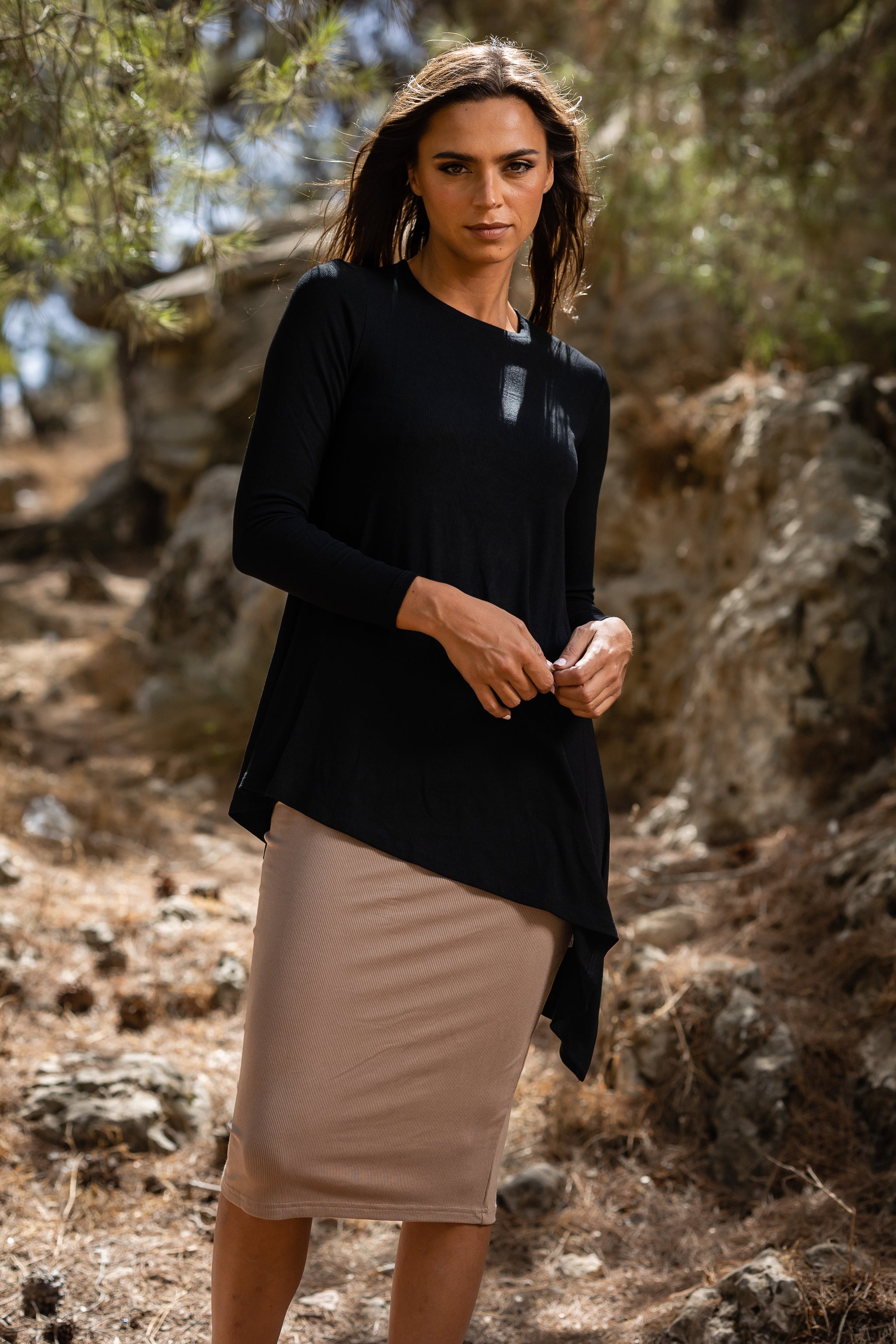 Our Asymmetrical Top is so flattering and comfortable you won't want to take it off! This top will instantly uplift any outfit. Pair it with our Ribbed Pencil Skirt for the perfect set!