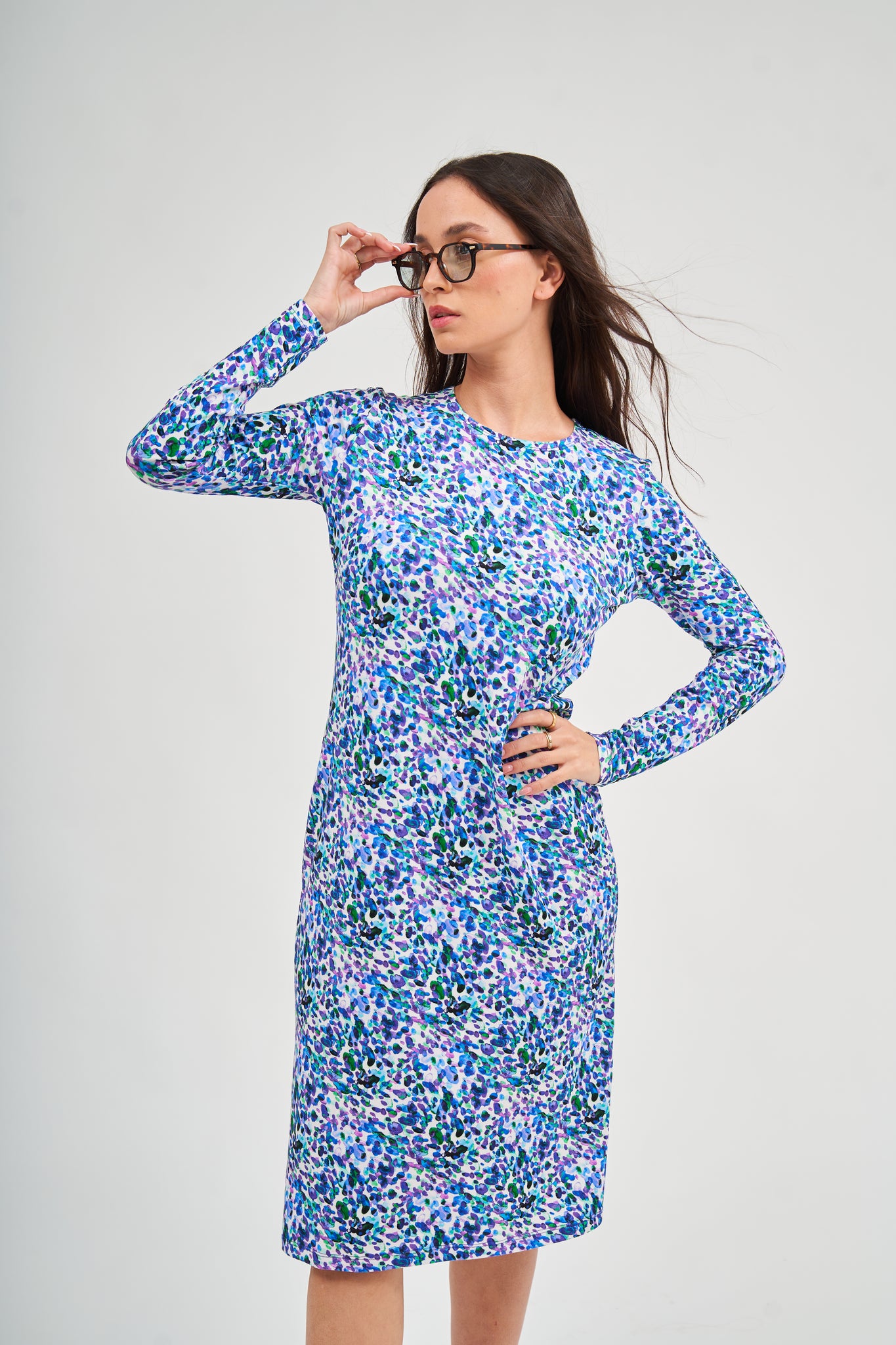 The new loose basic dress in black and white watercolor features a timeless design crafted from soft viscose fabric.